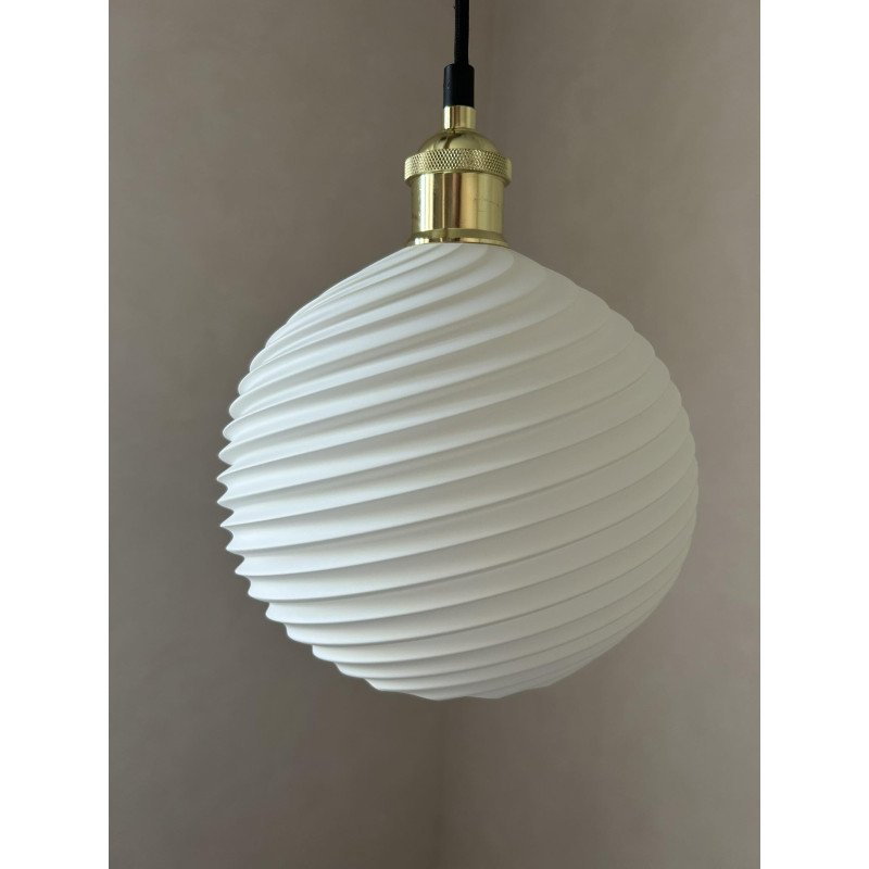 Această lustră cu pendul aduce un plus de eleganță și modernitate oricărui spațiu. Corpul iluminator are un design deosebit, cu abajur realizat din material rezistent, decorat cu textură fină de linii, ce difuzează lumina într-un mod plăcut și uniform.